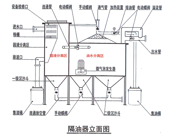 隔油機組由固液分離區(qū)、油水分離區(qū)和浮油收集裝置全封閉式構(gòu)成。